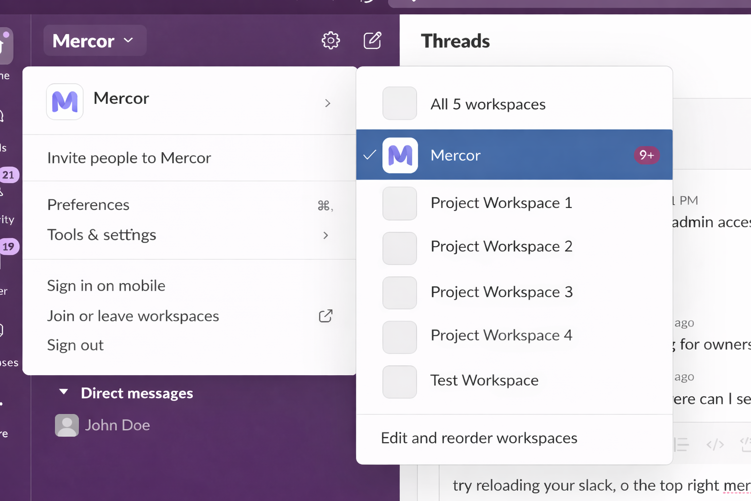 automatically prefixed with [EXP] to help differentiate contractors from internal Mercor team members. This is part of our identity and workspace management policy — it cannot be manually removed or changed.I am active on multiple projects. How do I switch between Slack workspaces?